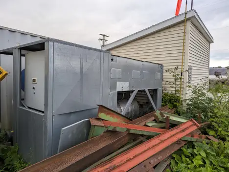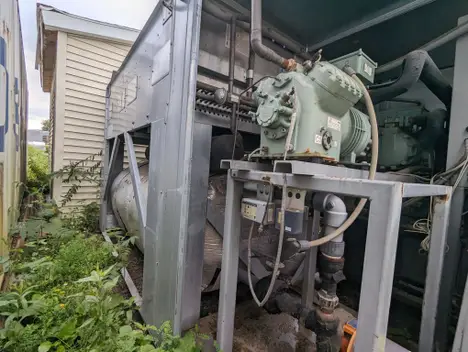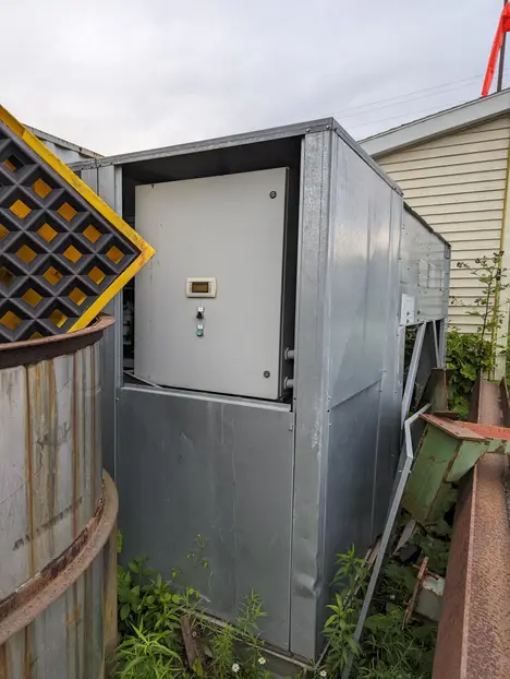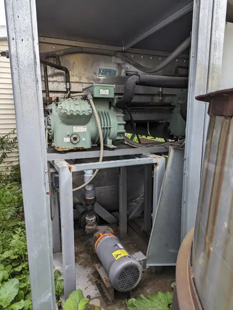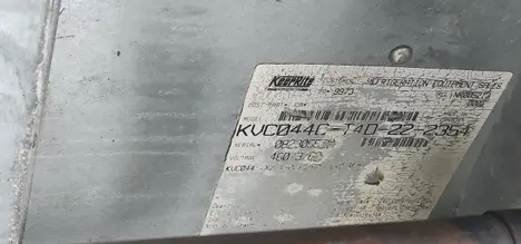 Keeprite, KVC model chiller that has been decommissioned for several years. It has been drained of water and is suspected to be drained of freon as well. Professional refrigerant repair outlet confirmed the front electrical panel would need to be repaired or replaced to operate the unit since it has been stored outside.