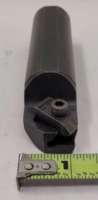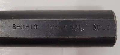 THIS INDEXABLE INSERT BORING BAR IS A KENNAMETAL MODEL B-2510, DESIGNED TO ACCEPT THE N-3L 3DL80 INSERT. THE TOOLING ACCESSORY FEATURES AN OVERALL LENGTH (OAL) OF 5 INCHES AND A SHANK DIAMETER OF 1.25 INCHES.