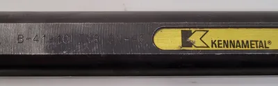 THIS IS A KENNAMETAL BORING BAR, MODEL B-41-10, WITH AN OVERALL LENGTH OF 8.5 INCHES. THE UNIT FEATURES A CUTTER END DIAMETER OF 1.25 INCHES AND A CUTTER END LENGTH OF 1.5 INCHES. IT IS DESIGNED WITH A CLAMP INSERT AND HAS A SHANK DIAMETER OF 1.25 INCHES. THE SHANK LENGTH MEASURES 7 INCHES. THE PART NUMBER IS B-41-10 AND IT IS COMPATIBLE WITH INS SN-43 INSERTS.