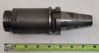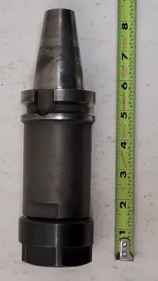 THIS KENNAMETAL CAT40 COLLET CHUCK HOLDER IS A PIECE OF TOOLING WITH A CAT 40 TAPER TYPE. THE OVERALL LENGTH (OAL) OF THE ENTIRE PIECE IS 8-1/4 INCHES. THE PROJECTION IS 5-1/2 INCHES. THE NUT FEATURES AN OUTER DIAMETER OF 2.50 INCHES AND AN INNER DIAMETER OF 1.00 INCH.