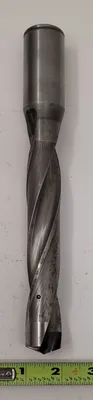 THIS KENNAMETAL INDEXABLE INSERT DRILL, MODEL DK1710913, FEATURES AN OVERALL LENGTH (OAL) OF 9.5 INCHES AND A DRILL END DIAMETER OF 26MM. IT IS DESIGNED WITH 2 SPIRAL FLUTES AND IS RIGHT-HANDED. THE TOOL UTILIZES A STRAIGHT SHANK WITH A DIAMETER OF 1.25 INCHES AND A LENGTH OF 2.36 INCHES. NUMBERS FOUND ON THE ITEM INCLUDE DK1710913 AND 0065044255.