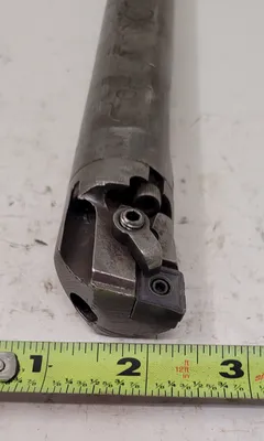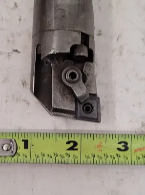 THIS KENNAMETAL KENLOC 1037 ASSEMBLY INCLUDES A BORING HEAD AND A SEPARATE BORING BAR. THE KENLOC 1037 BORING HEAD FEATURES AN OVERALL LENGTH (OAL) OF 1-5/8” AND A DIAMETER OF 1.37”. THE ACCOMPANYING BORING BAR HAS AN OAL OF 9” AND A DIAMETER OF 1.25”. WHEN COMBINED, THE TOTAL OVERALL LENGTH MEASURES 10-5/8IN.