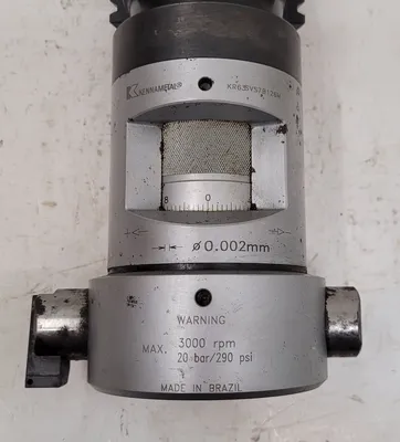 THIS IS A KENNAMETAL KR63SVS7B126M ROMICRON FINE BORING HEAD. IT IS DESIGNED FOR PRECISION TOOLING TASKS AND FEATURES A CAT 50 SPINDLE TYPE. THE BORING HEAD HAS A RANGE OF 138-161MM, A BODY DIAMETER OF 85MM, A PROJECTION OF 7.25IN, AND AN OVERALL LENGTH (OAL) OF 11.5IN.