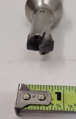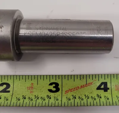 THIS IS A KENNAMETAL INDEXABLE DRILL, MODEL KSEM0625R1SSF075. IT FEATURES COOLANT-THROUGH CAPABILITY. THE DRILL HAS A 5/8" CUTTING DIAMETER AND A 3/4" SHANK DIAMETER. IT IS DESIGNED WITH 2 FLUTES AND HAS AN OVERALL LENGTH (OAL) OF 4 INCHES.