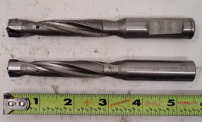 THIS KENNAMETAL KSEM136R5WN16M INDEXABLE DRILL SET INCLUDES TWO UNITS. THE CUTTING DIAMETER RANGES FROM A MINIMUM OF .531IN TO A MAXIMUM OF .535IN. THE PROTRUDING LENGTH IS 3.50IN, WITH A USABLE LENGTH OF 2.755IN. THE OVERALL LENGTH (OAL) IS 5.472IN, AND THE SHANK LENGTH IS 1.968IN. THE DESIGN FEATURES A RIGHT-HAND HELIX WITH 2 FLUTES.
