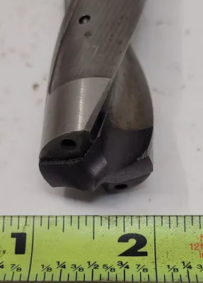 THIS IS A KENNAMETAL KSEM255R3WN32M INDEXABLE INSERT DRILL. IT FEATURES AN OVERALL LENGTH (OAL) OF 6.85 INCHES (174MM) AND A DRILL END DIAMETER OF 1.00 INCH (25.5MM). THE TOOL IS DESIGNED WITH 2 SPIRAL FLUTES, WHICH ARE 4.29 INCHES (109MM) LONG, AND OPERATES WITH A RIGHT-HANDED ORIENTATION. IT INCORPORATES A STRAIGHT SHANK WITH A 1.25-INCH DIAMETER AND A LENGTH OF 2.36 INCHES (60MM). THIS ITEM IS AN INDEXABLE INSERT DRILL.