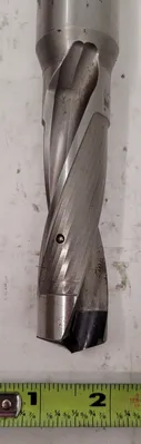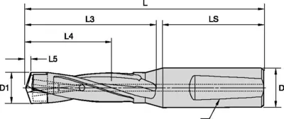 THIS KENNAMETAL KSEM260R3WN32M INDEXABLE DRILL FEATURES A UNIFORM DRILL DIAMETER OF 1.0236 IN, WITH A MAXIMUM DRILLING DEPTH OF 3.0709 IN, RESULTING IN A LENGTH/DIAMETER RATIO OF 3. THE OVERALL LENGTH OF THE TOOL IS 6.8504 IN. IT HAS A FLUTE LENGTH OF 4.2913 IN AND A DRILL POINT LENGTH OF 0.1575 IN. THE SHANK LENGTH MEASURES 2.3622 IN, AND THE ADAPTER/SHANK/BORE DIAMETER IS 1.2598 IN. THE TOOL UTILIZES AN INSERT SEAT SIZE (SSC) OF 5.