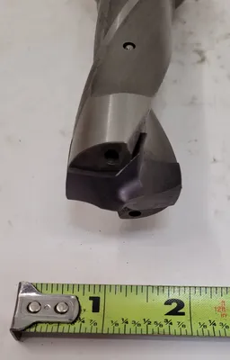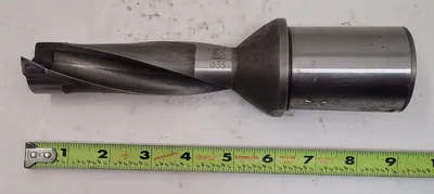 THIS IS A KENNAMETAL KSEM330R3WD50M THRU COOLANT DRILL. THE DRILL'S CATALOG ID IS KSEM330R3WD50M. IT FEATURES A DRILL DIAMETER M OF 1.2992 IN AND A DRILL DIAMETER MAXIMUM OF 1.3386 IN. THE TOOL HAS A LENGTH/DIAMETER RATIO OF 3, AN OVERALL LENGTH OF 8.937 IN, AND A FLUTE LENGTH OF 5.8268 IN. THE MAXIMUM DRILLING DEPTH IS 3.8976 IN. ADDITIONAL DIMENSIONS INCLUDE AN INSERT GAGE LENGTH OF 6.2598 IN, A DRILL POINT LENGTH OF 0.1999 IN, AND A SHANK LENGTH OF 2.6772 IN. THE ADAPTER / SHANK / BORE DIAMETER MEASURES 1.9685 IN.