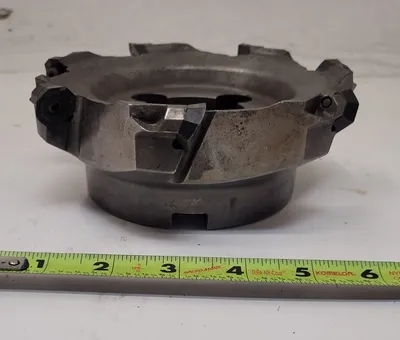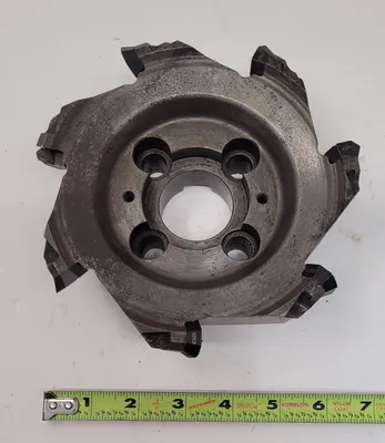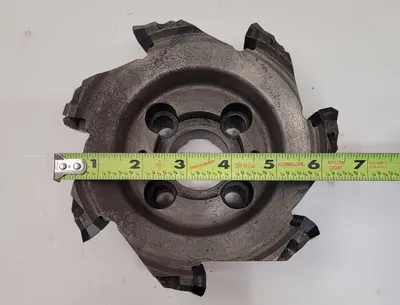THIS IS A KENNAMETAL KSOM160R07F07 FACEMILL, FEATURING A 7-FLUTE DESIGN. IT IS BUILT WITH COOLANT-THROUGH CAPABILITY. THE OVERALL DIAMETER MEASURES 6.5 INCHES, AND THE OVERALL LENGTH IS 2.5 INCHES. THE ARBOR HOLE ON THE CONNECTION SIDE IS 1.82 INCHES, AND THE HUB DIAMETER IS 4.48 INCHES.