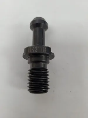 THIS IS A KENNAMETAL THREAD/HEAD, MODEL RK31114, WITH A 5/8-11 CONNECTION THREAD SIZE EXTERNAL AND A 45.000 HALF TAPER ANGLE. THE HARDWARE SYSTEM SIZE FOR THE WORKPIECE SIDE IS 40. KEY DIMENSIONS INCLUDE A BODY DIAMETER MACHINE SIDE OF 0.9380 INCHES, A NECK DIAMETER OF 0.3920 INCHES, A PILOT DIAMETER WORKPIECE SIDE OF 0.6360 INCHES, AND A HEAD DIAMETER OF 0.5890 INCHES. THE FUNCTIONAL LENGTH MEASURES 0.9880 INCHES, THE PROTRUDING LENGTH IS 1.264 INCHES, AND THE OVERALL LENGTH IS 2.250 INCHES. THIS COMPONENT IS SPECIFIED FOR USE WITH THE RKW40 WRENCH, REQUIRING A TORQUE OF 85 CATALOG FOOT POUNDS.