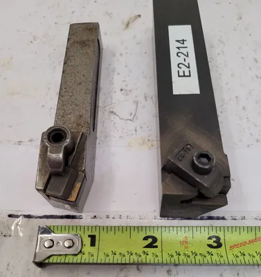THIS LOT INCLUDES TWO KENNAMETAL TOOL HOLDERS. THE FIRST TOOL HOLDER IS A KSBR12 MODEL WITH A 0.750" SHANK AND AN OVERALL LENGTH (OAL) OF 4.5". THE SHANK SIZE IS 0.750" SQUARE. THE SECOND IS A NER-163C NI6 TOOL HOLDER WITH A 1" SQUARE SIZE AND AN OAL OF 5".
