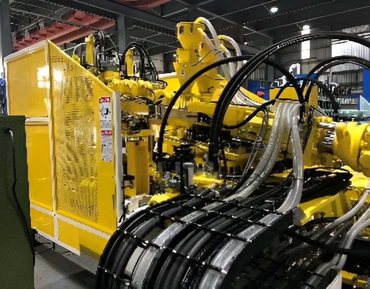 THE KING STEEL KS-9902E2A IS A HIGH-PRECISION ROTARY SHOE FOAM INJECTION MOLDING MACHINE DESIGNED FOR THE PRODUCTION OF MID-SOLES AND OUTSOLES USING ETHYLENE VINYL ACETATE (EVA) AND SIMILAR THERMOPLASTIC MATERIALS. THIS MODEL FEATURES A MULTI-STATION ROTARY DESIGN, TYPICALLY CONFIGURED WITH TWO OR MORE STATIONS, ALLOWING FOR SIMULTANEOUS INJECTION, COOLING, AND MOLD-OPENING CYCLES TO MAXIMIZE OUTPUT EFFICIENCY. THE MACHINE UTILIZES A HIGH-PERFORMANCE INJECTION SYSTEM WITH PRECISE TEMPERATURE CONTROL ACROSS MULTIPLE HEATING ZONES TO ENSURE CONSISTENT MATERIAL VISCOSITY AND FOAM QUALITY. ITS CLAMPING SYSTEM PROVIDES SIGNIFICANT FORCE TO MAINTAIN MOLD INTEGRITY DURING THE EXPANSION PROCESS, WHILE THE VACUUM SYSTEM ASSISTS IN AIR REMOVAL TO PREVENT SURFACE DEFECTS. INTEGRATED WITH A PROGRAMMABLE LOGIC CONTROLLER (PLC), THE KS-9902E2A OFFERS AUTOMATED PARAMETER ADJUSTMENTS FOR INJECTION SPEED, PRESSURE, AND TIMING. THE EQUIPMENT IS ENGINEERED FOR ENERGY EFFICIENCY AND HIGH-SPEED OPERATION IN INDUSTRIAL FOOTWEAR MANUFACTURING ENVIRONMENTS.