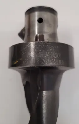 THIS IS A KOMET ABS 50 KUB 02/27.5/55.0 R38 INDEXABLE INSERT DRILL, IDENTIFIED BY PART #: UV0202060. THE DRILL HAS AN OVERALL LENGTH OF 4.75”, A DRILL END DIAMETER OF 1.0”, AND A DRILL END LENGTH OF 2.5”. IT FEATURES A SHANK DIAMETER OF 28MM AND A SHANK LENGTH OF 1.25”. THIS TOOL IS DESIGNED WITH 2 FLUTES AND IS SOLD AS ONE PIECE.