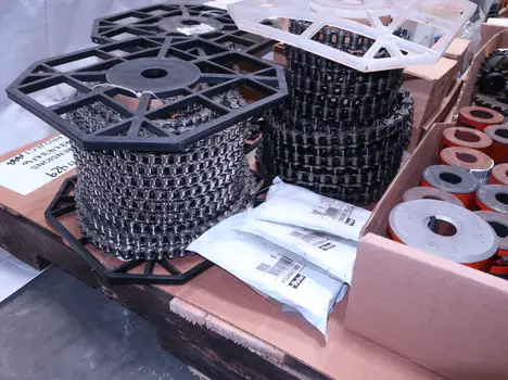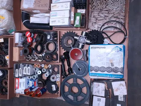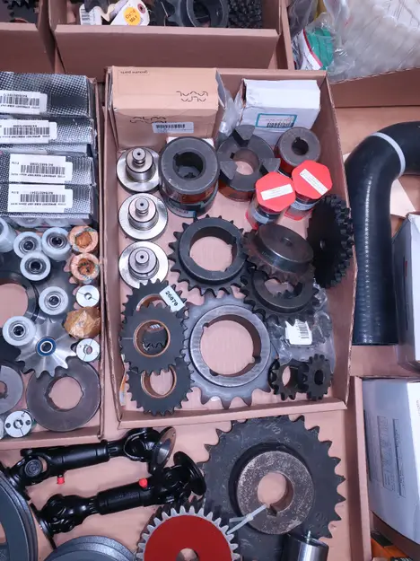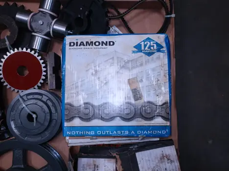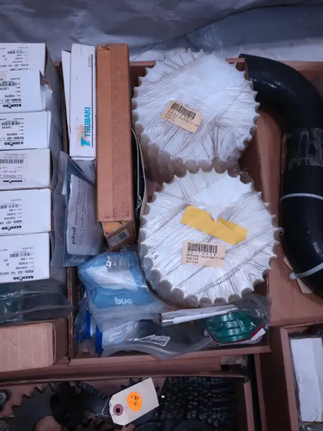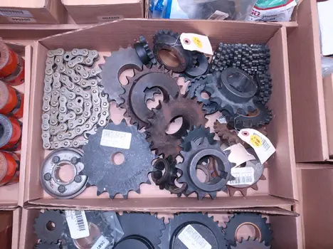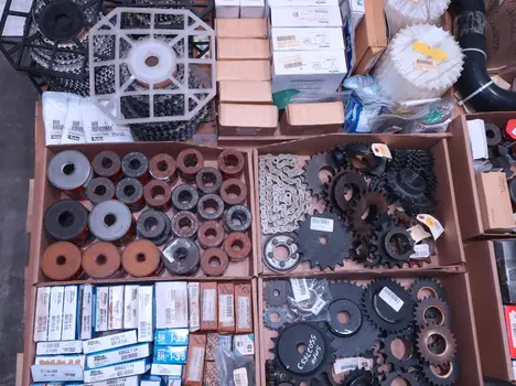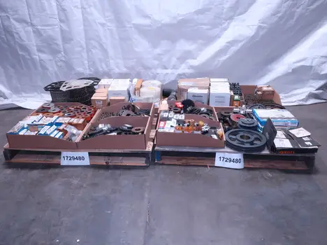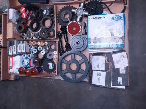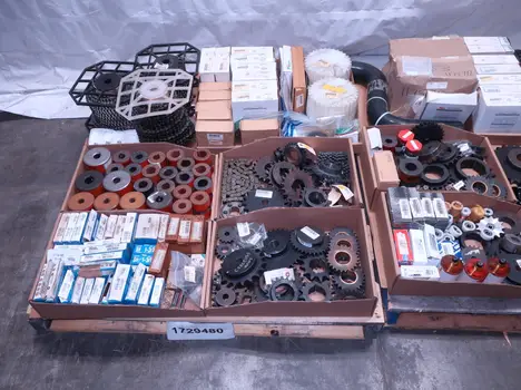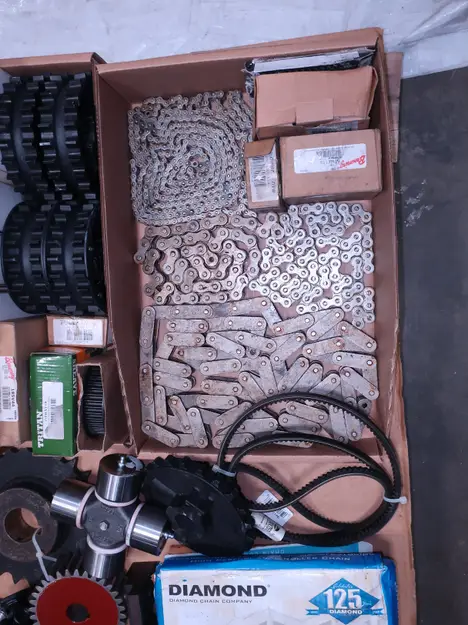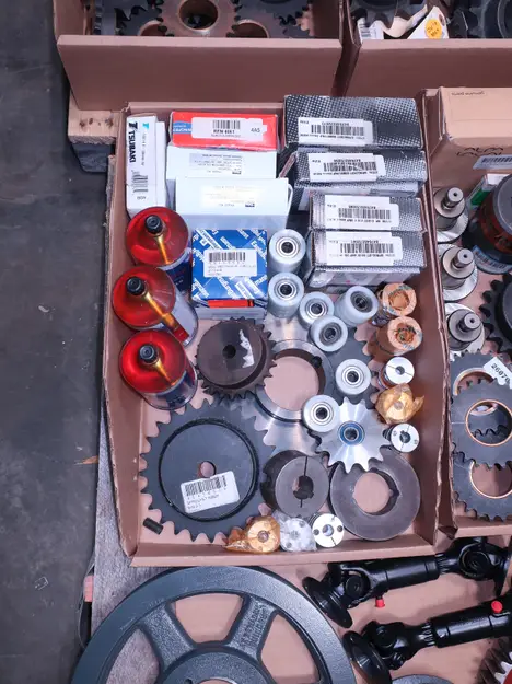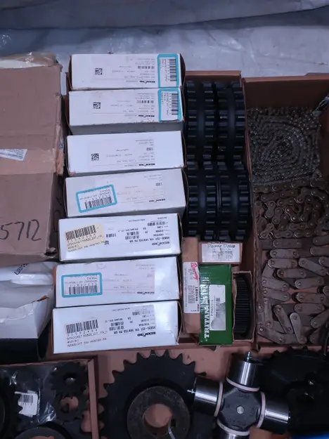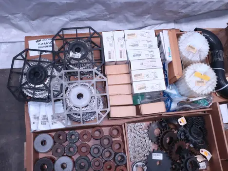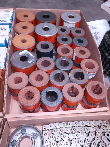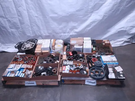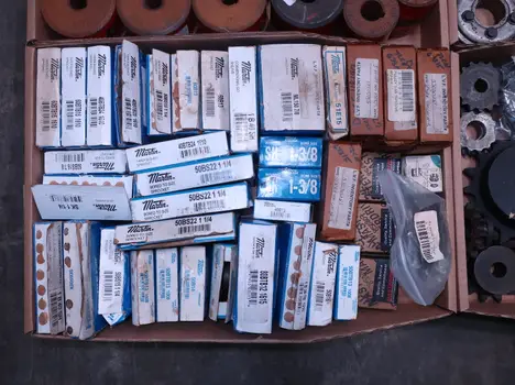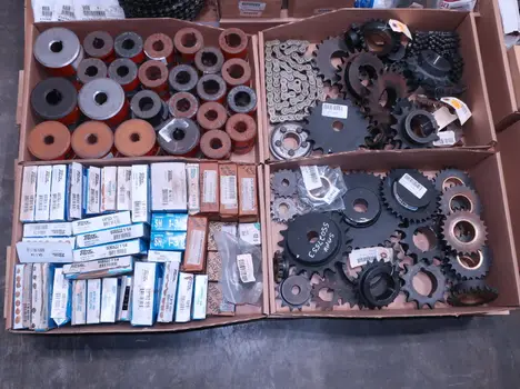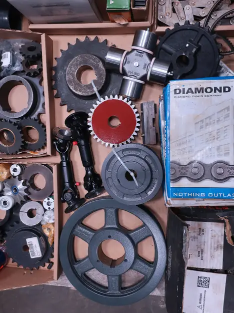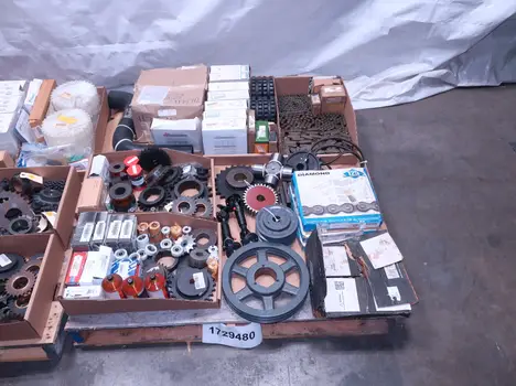 2 PALLETS OF ASSORTED POWER TRANSFORMERS, SPROCKETS, GEARS, PULLEYS, U-JOINTS, SEALS, COUPLINGS, BROWNING, TIMKEN, DIAMOND, MARTIN, TB WOODS, LOVEJOY, TSUBAKI, REXNORD