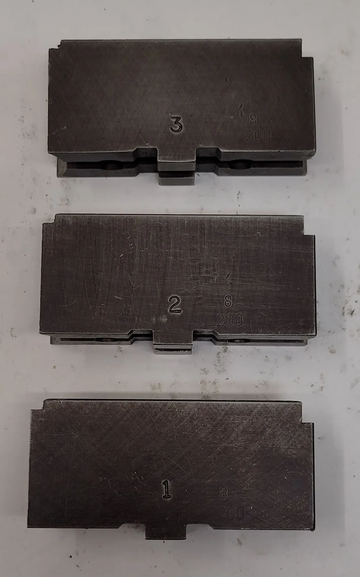 LATHE CHUCK JAWS, 3-PIECE SET, 3.5" X 1.5" X 1", NUMBERED 1-3