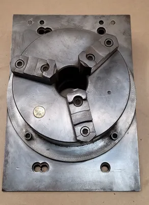 THIS LE BLOND 8IN 3 JAW CHUCK IS DESIGNED FOR LATHE APPLICATIONS, FEATURING AN 8-INCH DIAMETER AND 3 JAWS. THE CHUCK INCLUDES A 2-INCH CENTER HOLE. IT COMES WITH AN ATTACHED ANGLE PLATE WITH MEASURED DIMENSIONS OF 14 INCHES IN LENGTH, 10 INCHES IN WIDTH, AND A MAXIMUM HEIGHT OF 4 INCHES.