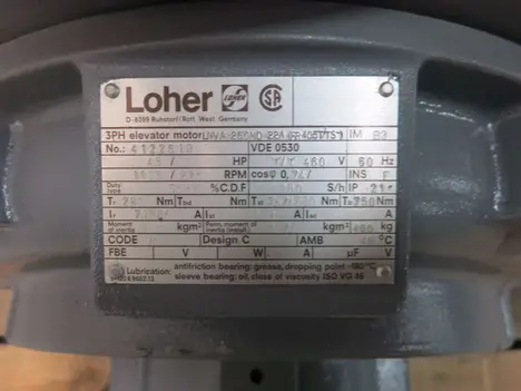 LOHER LNVA-250MD-22A ELECTRIC ELEVATOR MOTOR