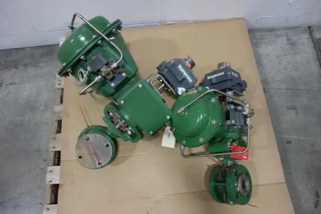 LOT OF 2 ASSORTED FISHER VALVES, FISHER V300 PNEUMATIC 2052 300 STEEL FLANGED DXP-M21GSEB 1IN; FISHER V300 VEE-BALL PNEUMATIC 2052 300 STEEL FLANGED DXP-M21GSEB 2IN