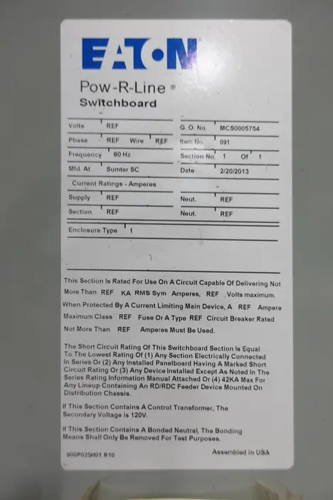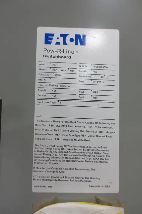 LOT OF 2 EATON POW-R-LINE SWITCHBOARDS, 208Y/120V, 3 PH, 4 W