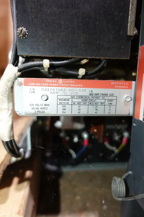 LOT OF 2 GENERAL ELECTRIC AKR-6D-30S LOW VOLTAGE CIRCUIT BREAKERS, 800 AMP, 30 KA, 508V
