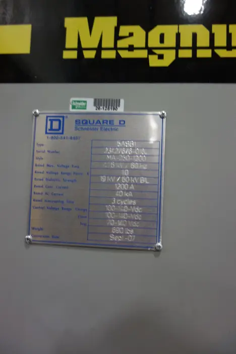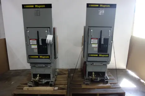 LOT OF 2 SQUARE D VACUUM POWER BREAKERS - MODEL 5ASB1 MA-250-1200 MAGNUM, 1200A AMP 1KV-AC