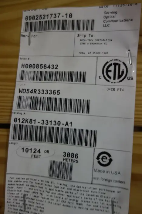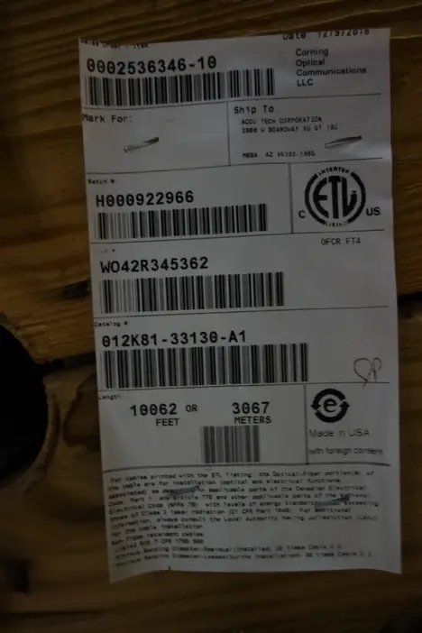 LOT OF 3 ASSORTED SPOOLS OF CORNING ARMORED MULTIMODE FIBER OPTIC CABLE WIRE - MODEL 012K81-33130-A1, 12 STRANDS, OM1, 10124 FT/ MODEL 024K81-33130-A1, 24 STRANDS, OM1, 10056FT/ MODEL 012K81-33130-A1, 12 STRANDS, OM1, 10062FT, LOCATED IN NEW MEXICO