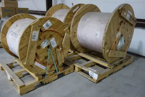 LOT OF 3 ASSORTED SPOOLS OF CORNING ARMORED MULTIMODE FIBER OPTIC CABLE WIRE