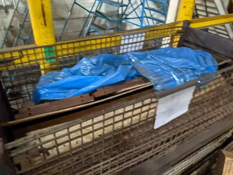 LOT OF 3 CONTAINER CAGES WITH CONTENTS, CERAMIC CASTS, STEEL FIXTURES, MOUNTS
