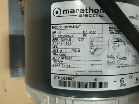 LOT OF 3 MARATHON ELECTRIC AC MOTORS, RPM 1725/1425, HP 1/8, HZ 60/50, V 110-115/220-230