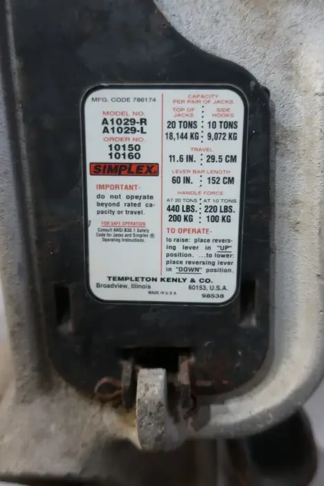 LOT OF 4 REEL JACKS, SIMPLEX A1029, 20 TONS, 11.6" TRAVEL; DUFF NORTON 1030 CRA, 10 TON