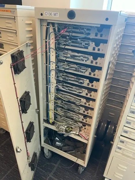 One Dock & Lock® Series 2052 Widescreen Laptop Security Cabinets are most versatile laptop cabinets. These laptop cabinets are ideal in any business or industrial environment where widescreen computers need to be charged and connected to a network to do security patches and software upgrades. All units contain one network switch and are on wheels for easy transport. 10 unit capacity. Items sold as is where is.