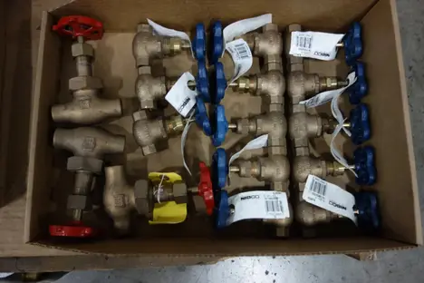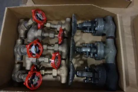 LOT OF ASSORTED GLOBE VALVES - NIBCO T-211-Y MANUAL BRONZE THREADED 1/4IN NPT, MILWAUKEE 1590 MANUAL BRONZE BUTT WELD 3/4IN , NEWCO 28X-FS3 BR 203 NEWCO 41 MANUAL 800 STEEL 1/2IN , RP&C F81-D MANUAL 800 STEEL SOCKET WELD 1/2IN , HENRY VOGT 12141 MANUAL 800 STEEL THREADED 1/4IN NPT