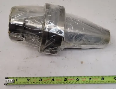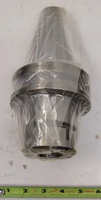 THE LYNDEX B5007-0040-4.00 IS A BT 50 HIGH TORQUE COLLET CHUCK SET, INCLUDING THREE UNITS. EACH CHUCK FEATURES AN ER40 COLLET SYSTEM AND A BT TAPER SHANK TYPE WITH A BT50 TAPER SIZE AND MODULAR CONNECTION SIZE. TECHNICAL SPECIFICATIONS INCLUDE A NOSE DIAMETER OF 2.5 INCHES, A HEAD LENGTH/PROJECTION OF 4 INCHES, AND AN OVERALL LENGTH (OAL) OF 8 INCHES. THE CHUCKS ARE DESIGNED WITH THROUGH COOLANT CAPABILITY.