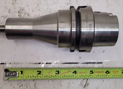 THIS LYNDEX-NIKKEN HSK COLLET CHUCK, MANUFACTURER PART NUMBER HSK63A-MMC12C-110-A, FEATURES AN HSK63 TAPER SIZE AND IS COMPATIBLE WITH THE MMC12 COLLET SERIES. IT ACCOMMODATES A MINIMUM COLLET SIZE OF 0.157 INCHES AND A MAXIMUM COLLET SIZE OF 0.5 INCHES. THE TOOLHOLDER OFFERS A 4.33-INCH PROJECTION. ITS PHYSICAL DIMENSIONS INCLUDE A MAXIMUM OUTSIDE DIAMETER OF 1.18 INCHES AND AN OVERALL LENGTH OF 5-35/64 INCHES.