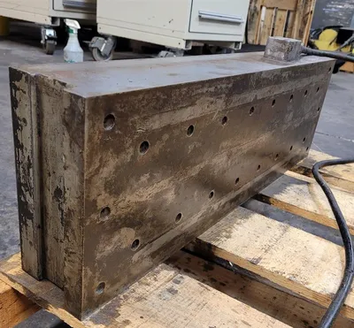 THIS IS A MAGNA-LOCK FINE POLE MAGNETIC CHUCK WITH DIMENSIONS OF 24-3/4" X 8-1/4" X 4". THE UNIT INCLUDES A RECTIFIER AND A CONTROLLER. IT IS A RELIABLE MAGNA-LOCK QUALITY COMPONENT.