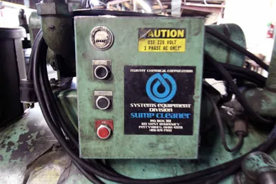 THIS MASTER CHEMICAL CORP XYBEX YELLOW BELLIED SUMP SUCKER (YBSS) IS FLUID RECYCLING EQUIPMENT DESIGNED FOR CLEANING MACHINE TOOL SUMPS. IT FEATURES SOLID HOLDING CAPACITIES UP TO 5.3 CUBIC FEET AND LIQUID CAPACITIES UP TO 1,000 GALLONS. THE UNIT'S DIMENSIONS ARE 60.00 INCHES IN HEIGHT, 40.00 INCHES IN WIDTH, AND 70.00 INCHES IN LENGTH, WITH A TOTAL WEIGHT OF 1,000.00 LBS. IT OPERATES ON 220V 3 PHASE POWER, PROVIDING AN EFFICIENT SOLUTION FOR THOROUGH AND RAPID FLUID MANAGEMENT AND MACHINE CLEANING.