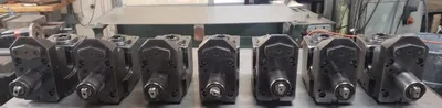 THE MAZAK MULTIPLEX CNC TURNING CENTER SERIES IS ENGINEERED FOR HIGH-VOLUME, CONTINUOUS PROCESSING THROUGH ITS SYMMETRICAL MACHINE DESIGN. THIS TWIN-SPINDLE, TWIN-TURRET CONFIGURATION FACILITATES AUTOMATED WORKPIECE TRANSFER BETWEEN SPINDLES, ENABLING TWO-STEP CONTINUOUS MACHINING FOR ENHANCED THROUGHPUT. THE OPPOSING SPINDLE ARRANGEMENT ALLOWS FOR SIMULTANEOUS CUTTING BY BOTH TURRETS. THE MACHINE IS EQUIPPED WITH LIVE TOOLING CAPABILITY, PROVIDING FLEXIBILITY FOR SECONDARY MILLING, DRILLING, AND TAPPING OPERATIONS, BROADENING ITS APPLICATION RANGE BEYOND STANDARD TURNING. THIS UNIT INCLUDES A TOTAL OF 7 LIVE TOOLING STATIONS, OPTIMIZING COMPLEX PART MANUFACTURING IN A SINGLE SETUP. TYPICAL SPECIFICATIONS FOR THE MULTIPLEX W MODELS INCLUDE CHUCK SIZES UP TO 10" AND MAXIMUM MACHINING DIAMETERS UP TO 16.93".