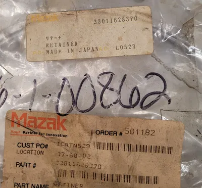 THIS MAZAK RETAINER FEATURES AN OVERALL DIAMETER OF 11 INCHES, AN INTERIOR DIAMETER OF 8.5 INCHES, AND A THICKNESS OF 0.40 INCHES. THE COMPONENT IS DESIGNED FOR USE WITH TOOLING AND ACCESSORIES.