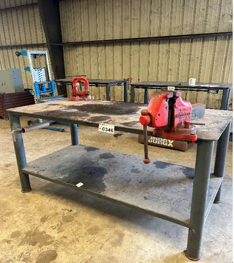 METAL SHOP TABLE WITH VICE & PIPE VICE