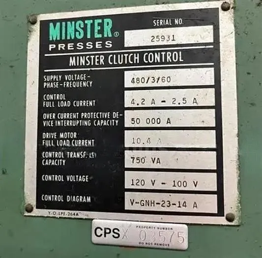 MINSTER 5 OBI PRESS 45 TON 4" STROKE 90-180 SPM 3 HP