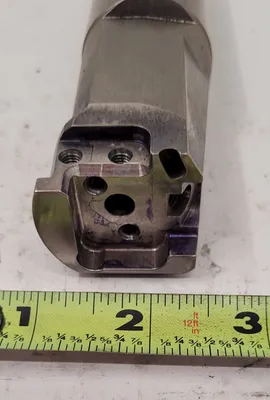 THE MITSUBISHI GYDLUS24M90D-M25R IS AN INTERNAL GROOVING BORING BAR DESIGNED FOR PRECISION BORING TASKS. THIS TOOL FEATURES A LEFT-HAND CUT DIRECTION. ITS DIMENSIONS INCLUDE AN OVERALL LENGTH OF 5.961 INCHES, A CUTTING SIDE LENGTH OF 2.5 INCHES, A SHANK DIAMETER OF 1.5 INCHES, AND A SHANK LENGTH OF 3.75 INCHES.