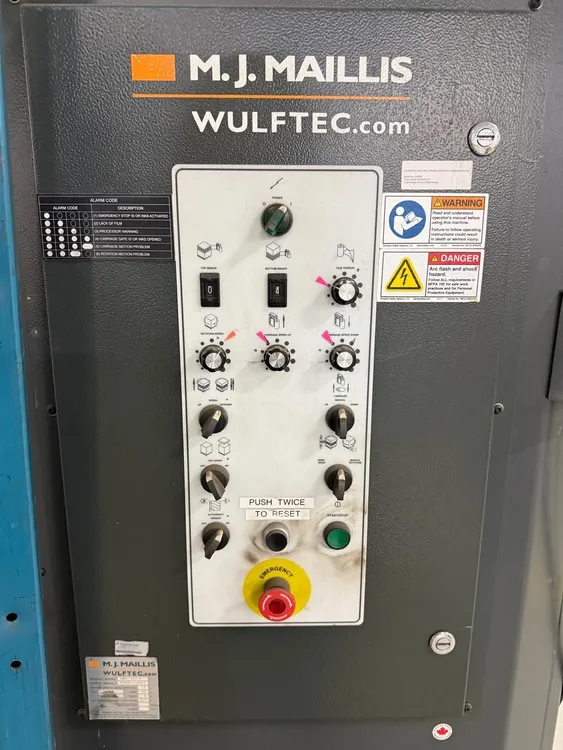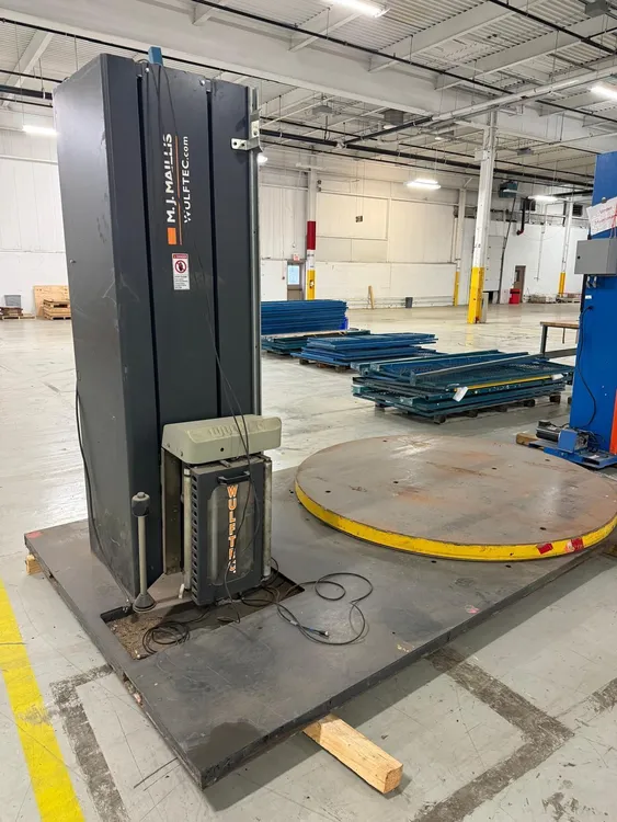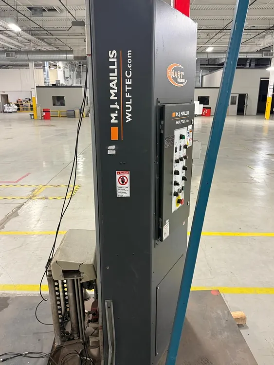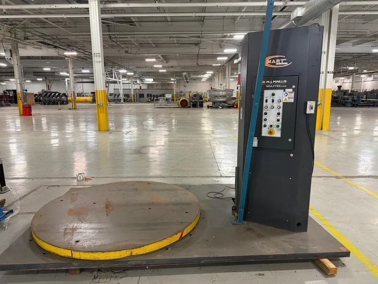 THE MJ MAILLIS WSML-277-S IS A SEMI-AUTOMATIC TURNTABLE STRETCH WRAPPER DESIGNED FOR EFFICIENT PALLET PACKAGING. IT OPERATES ON A 120V, 60HZ, SINGLE-PHASE POWER SUPPLY AND FEATURES A 78-INCH DIAMETER TURNTABLE. THE MACHINE DELIVERS A PRODUCTION RATE OF UP TO 55 LOADS PER HOUR WITH A VARIABLE TURNTABLE SPEED RANGING FROM 0 TO 16 RPM. KEY PERFORMANCE FEATURES INCLUDE AUTOMATIC HOME POSITIONING, ADJUSTABLE TOP AND BOTTOM WRAP COUNTS, AND A VARIABLE FILM CARRIAGE SPEED TO CUSTOMIZE WRAPPING CYCLES. THIS MODEL SUPPORTS A MAXIMUM LOAD WEIGHT OF 5,000 LBS AND ACCOMMODATES LOADS WITH MAXIMUM DIMENSIONS OF 65 INCHES IN LENGTH, 65 INCHES IN WIDTH, AND 80 INCHES IN HEIGHT. THE EQUIPMENT ITSELF WEIGHS 1,700 LBS AND HAS OVERALL PHYSICAL DIMENSIONS OF 133 X 78 X 84 INCHES.
