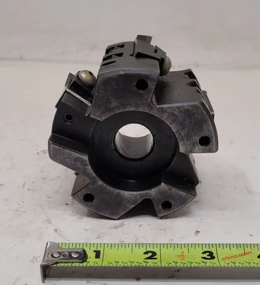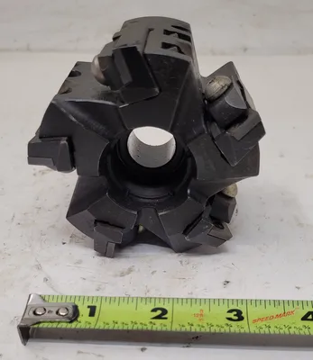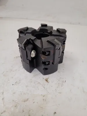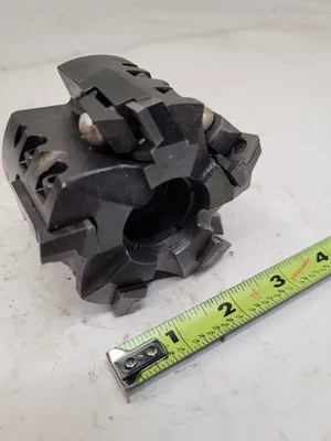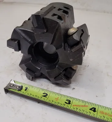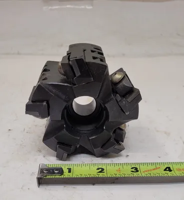 THIS IS A MODCO TOOLS MILLING CUTTER, MODEL 2B-31455 - C-18513. THE TOOL HAS AN OVERALL LENGTH (OAL) OF 2.48 INCHES (63MM) AND FEATURES 5 FLUTES/INSERTS. ITS OVERALL DIAMETER IS 3.4 INCHES (86.5MM), AND THE BORE DIAMETER IS 20MM. THIS HIGH-QUALITY ACCESSORY IS IDEAL FOR PRECISION TASKS AND EFFICIENT MACHINING.