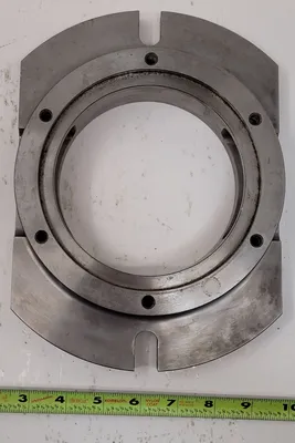 THE MOUNTING PLATE FEATURES A CIRCULAR DESIGN WITH AN OVERALL DIAMETER OF 7 INCHES, MAKING IT SUITABLE FOR VARIOUS TOOLING AND ACCESSORY APPLICATIONS. IT INCLUDES A BASE MEASURING 10 INCHES BY 7 INCHES, PROVIDING A STABLE AND SECURE FOUNDATION FOR MOUNTING PURPOSES. THE PLATE IS EQUIPPED WITH A THROUGH HOLE WITH AN INNER DIAMETER OF 5 INCHES, ALLOWING FOR THE PASSAGE OF COMPONENTS OR FASTENERS AS NEEDED. THIS CONFIGURATION IS DESIGNED TO ACCOMMODATE SPECIFIC INSTALLATION REQUIREMENTS, ENSURING COMPATIBILITY WITH A RANGE OF EQUIPMENT AND SETUPS.