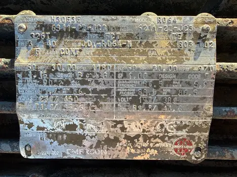 MOTOR, 30 HP, 1180 RPM, 326T FRAME, B11690, SUGAR END 1ST FLOOR