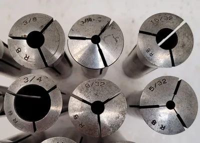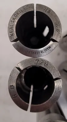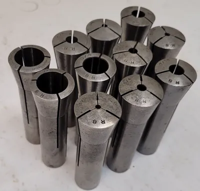 THIS IS A NEAL SKOKIE SET OF 11 R8 COLLETS. THE SET CONSISTS OF 11 INDIVIDUAL TOOLS, ALL OF THE R8 COLLET TYPE. THE INCLUDED SIZES ARE TWO 7/8 INCH, ONE 1/8 INCH, ONE 5/32 INCH, ONE 3/16 INCH, ONE 9/32 INCH, ONE 3/8 INCH, ONE 7/16 INCH, ONE 15/32 INCH, ONE 3/4 INCH, AND ONE 1/4 INCH COLLET.