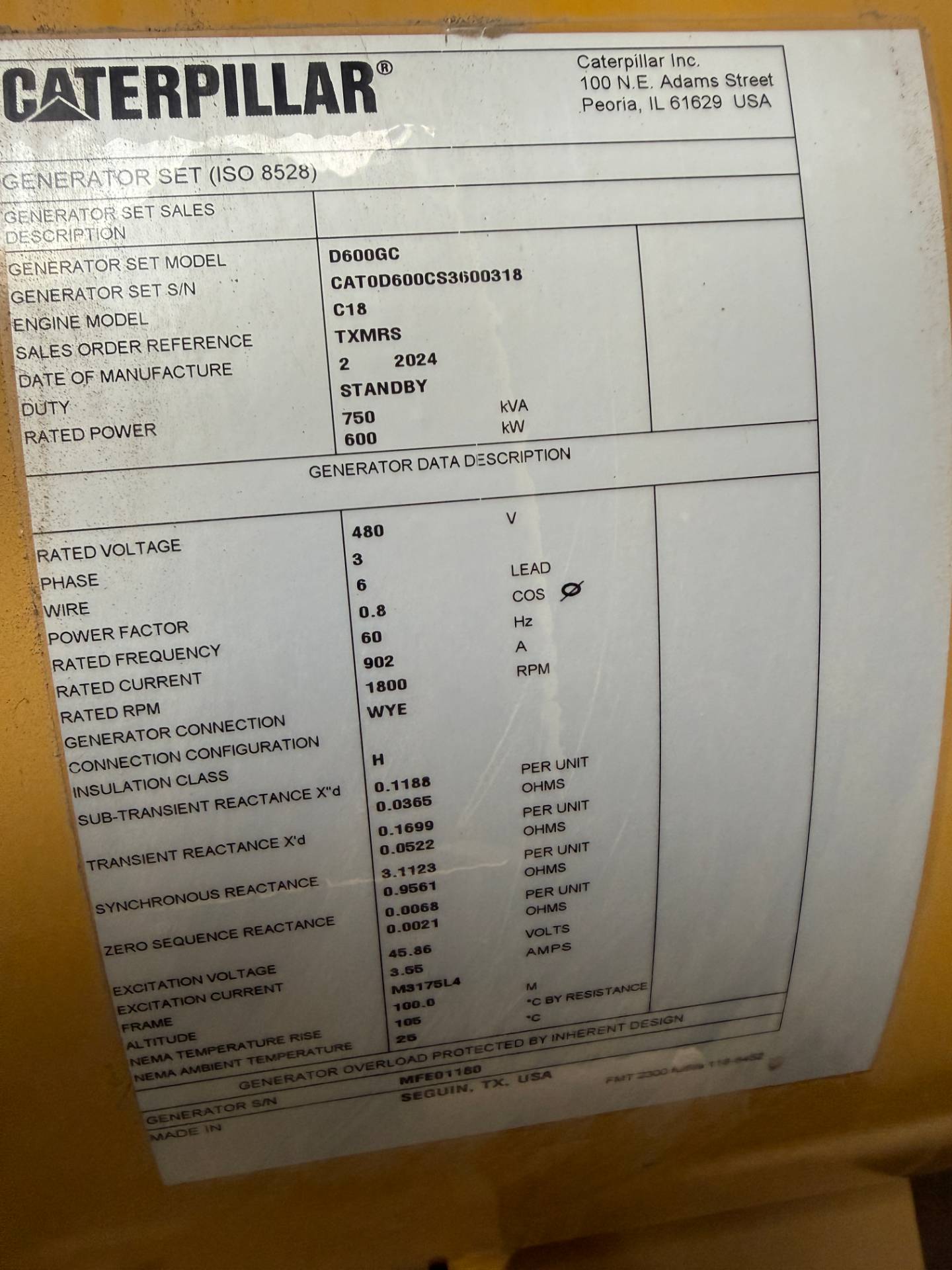 NEW CATERPILLAR C18 600 KW DIESEL GENERATOR