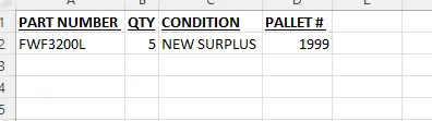 QTY 5--NEW SURPLUS FWF3200L