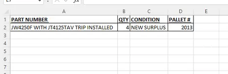 QTY 4--NEW SURPLUS JW4250F WITH JT4125TAV TRIP INSTALLED