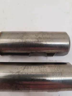 THIS IS A LOT OF TWO NIAGARA N80320 BALL NOSE JOBBER DRILLS, CONSTRUCTED FROM HIGH-SPEED STEEL (HSS) AND MADE IN THE USA. KEY DIMENSIONS INCLUDE A 1-INCH DIAMETER, A 4-FLUTE NECK STYLE, A 3-INCH FLUTE LENGTH, APPROXIMATELY 8-INCH DRILL LENGTH, 2.5-INCH SHANK LENGTH, AND A 10.5-INCH OVERALL LENGTH. ADDITIONAL SPECIFICATIONS NOTED ARE LD=5.441 D171, LD=5.441 IO21, AND MICROSHIELD/GP.